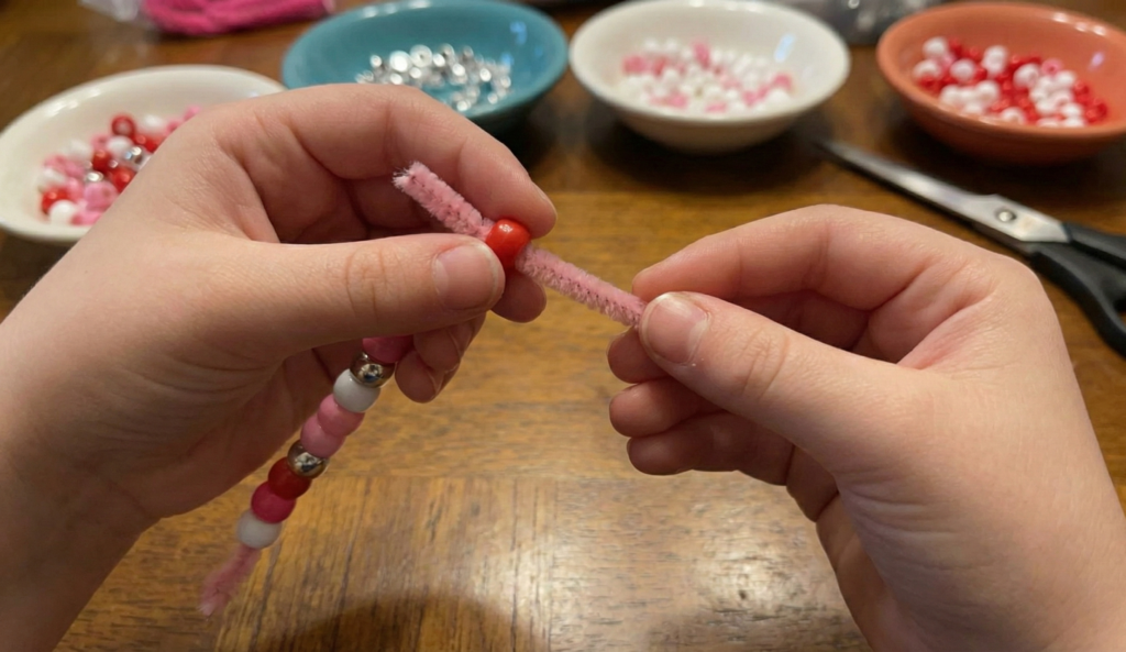 To wrap things up with a craft that creates real memories, beaded heart keychains are one of the best Valentine’s Day crafts for kids to try. Not only are they easy to make, but they also double as thoughtful gifts for teachers, friends, parents, and grandparents. In the end, this simple project turns beads and pipe cleaners into a gift filled with heart.